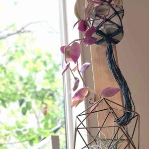 母が、麻紐で編んでくれたプラントハンガー。シュガーバインと良い感じです。