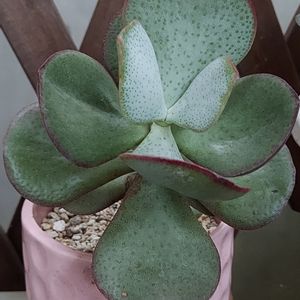 冬場に弱いクラッスラ. このアルボレッセンスもリスクが高かったけど, 今年は,この株, 団扇のような大葉も痛まず,無事冬越え. ガラス戸棚の奥で,水遣りを断ったこと,好天が続いた のが良かったのかも..