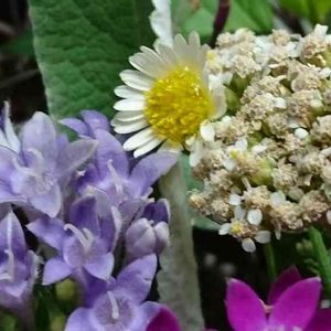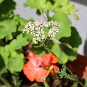 ヤロウの花 💕 ヤロウというハーブで、葉の 形がギザギザしているので ノコギリソウともいうそうです🌿 可愛い花なので見ていたら、 親切な方が教えて下さいました😊