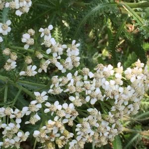 ヤロウというノコギリソウのハーブ。 めっちゃ咲いてます。株元も葉だらけ! 身体に良いと言われるが、何もしてない笑