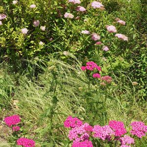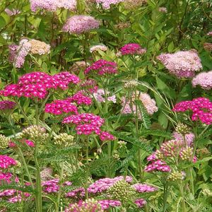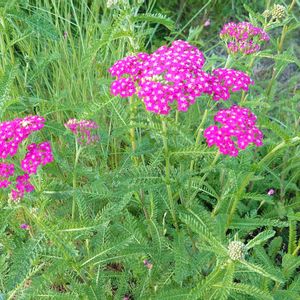 na-chanさんから頂いたヤロウが咲きました🌿 濃いピンクが可愛くて元気出ます💕 敷地の外の道端には白のヤロウが咲いています🌿 元々うちには居ないのでどこかから飛んできたのかな〜? 密かに野良ヤロウと呼んでいます...🤣