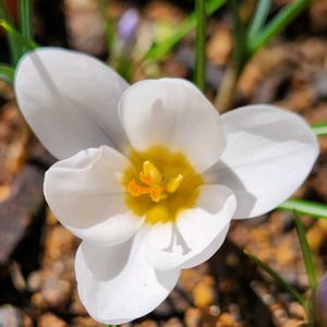 我が家の早咲き球根三種 ミニアイリスのアリダ クロッカスのホワイトウェルパープル オーニソガラムのホワイトトロフィー クロッカスとミニアイリスは、地植え。 オーニソガラムは鉢植えです。 みんな小さく10センチ前後で可愛い💕