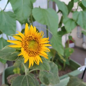 我が家の毎年恒例のベランダひまわり今年も1輪目が咲きました🌻 毎年育てているのはダイソーで2個100円のミニ咲きひまわりです!!
