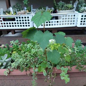 おはようございます☺️ セダムの中から、移植後に芽を出した🍇の藤稔(ふじみのり)さん、これからどうしましょう⁉️