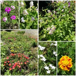 南側入り口左の様子🌼💕 いつもトレニア🌼だらけになる今頃(^.^) 今年はポーチュラカ🌼 バーベナ🌼が巻き返してくれました👍 ↘マリーゴールド🌼復活ヽ(*´^`)ノ