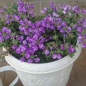 寄せ植えの八重咲きジュリアンの代わりに植えようかなぁ~…と買ってきた宿根バーベナ・ペティーナ🌼✨ 買ってきたのは良いけど、花が終わったジュリアンが珍しく枯れずに葉っぱが青々と茂っているので、植え替えられません😓💦 もうバーベナは終了した葉ボタンの鉢に植えて、寄せ植えは現状維持しようかしら😅