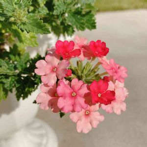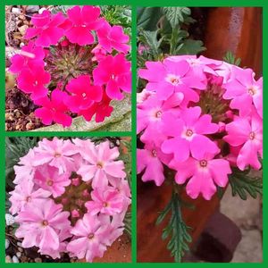 お友達からいただいた、今日のお花-3色のバーベナ赤白ピンクとそれぞれ可愛いく🎶💕咲いてます🥰 けっこう暑さにも強く、長い間楽しみました😊