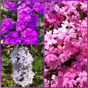 🌱宿根バーベナ 私道に植えたバーベナきれいに咲き出した🌸 芝桜区域侵食中。 う〜ん😅 バーベナのほうが花が長いし、強いし、群生になって綺麗。