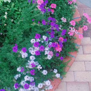 昨日の夕暮れ時🌆 カラフル〜💕 ピンク、紫、白! ラブリーな配色のバーベナ🎀 暑いから早く帰りたかったのに💦 またまた道草😆