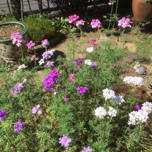 庭を乗っ取る気でしょうか💕バーベナ😆 酷暑と変な長雨でお星さま⭐️になった その他大勢を尻目にひとり勢力を拡大中〜 真夏のホームセンターにあって ポット苗の中でパンパンの根っこでも それをガリガリ剥いて炎天下に植えても なんちゃ〜ないへっちゃらな子💪🏾 和田アキ子か八村塁クラスの背丈なので さすがに花壇の一番後ろに植えたのに んなことはお構いなしの出っ張りかた(笑) アハッ🤣暑さも長雨も関係ないね〜って 夏最強のバーベナでした (❁ᴗ͈ˬᴗ͈)⁾⁾⁾ペコッ♬