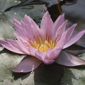 こんにちは♪ 💖水曜日のスイレン 💖熱帯スイレン💖 💖⑨ピンク・プラッター💖 明るいピンク色でフラット型に咲きます 🌿葉はわずかに茶色のドットが入ります