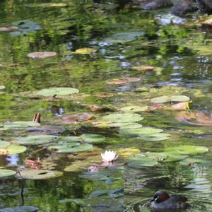 こんにちは♪ 外池のスイレン カイツブリが気持ち良さそうに泳いでます