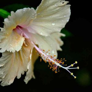今日はいいかな〜、って思ってたらまた雨が降って来ました。 今また日が射して。変わりやすい天気です。晴れのち曇りのち雨のち晴れ。 これは何という種類のハイビスカスでしょうね?