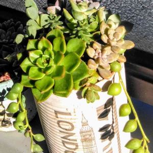 レディジア ・セデベリア属 昨日の寄せ植えに、入ってるのだが、 🍁紅く染まるのを、👀見たくて 単独でも狩ったのです。 胴切りと葉挿しで、増やしてみますね🤣🎶 セダム と エケベリアとの交配種 なので、強くて増えやすい💕