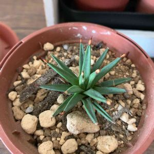 ポチっと してしまいました…😅 3センチ…あるかないかの 小さい子🌱✨ 雷神のお子ちゃま2つ、お嫁に行ったので😄置き場所ができました。 雷神、王妃雷神に 続き 我が家で 3種類目のアガベ✨ 実は もう一種類、ポチっとしたので💧 4種類目が 数日後には 届きます😝(笑) この子は… 大きくなると トゲのところに 綿毛?が 生えるみたい😳 すごく 成長も 遅いみたいなので、ゆっくりのんびり💕 大事に お世話していこうと思います😉🎶
