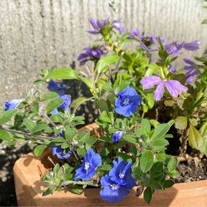 2年目のスカエボラが5月の初めはたくさん咲いていたのに急に元気がなくなって心配していたら 少し復活してきました。アメリカンブルーも咲き出して♡元気が無くなった理原因は🐜さんが鉢の中に素を作ってたからだった??