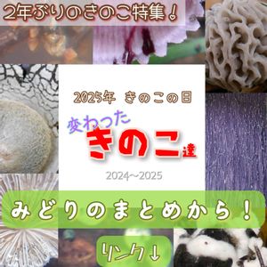 【久しぶりの宣伝】 きのこの日もそろそろ終わりそうなのですが、2025きのこの日記念みどりのまとめを投稿しました! ………実に2年振りです 2024〜2025年9月のユニークなきのこのピックアップです! 簡素な内容ですが眺めるだけでも是非ご覧ください〜 ↓リンク↓ https://greensnap.jp/greenBlog/28321845?ref=dsh_ ※ブラウザから入らないと閲覧できない可能性がある様です。自分の投稿一覧から行くか、コピペすることをお勧めします。