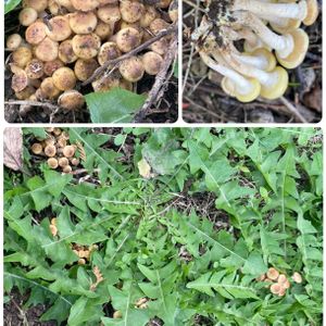 このキノコの名前、分かる方がいらしたら教えてください🙇 うち(神奈川県西部)の近所の梅林に生えていました。 最初、市販のブナシメジを誰か捨てたのかと思ったら、あちこちに生えていて(写真下部)。 こんな群生しているキノコを見るのは初めてでびっくりしました。 よろしくお願いします。
