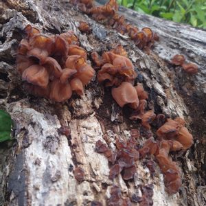 ふふふ ウラベニガサ(*´꒳`*) 椎茸の生えていたコナラの朽木に 生えていました♪ ⌒ ◯ ( ◯ ) ( °▽° ) 🍄 ☘️☘️☘️☘️☘️☘️☘️