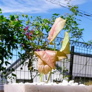 青空の下💙✨⤴︎⤴ My 🦄 Gardenより…✨💕 🍬 No.4🍬 🐦ハレタネ☀️(ღ˘⌣˘ღ)🍧 ホッ🌻🐦 🪴シンゴニウム💖ちゃん🪴 スクスク💖(๑˃̵ᴗ˂̵)و育ってねっ 🙌