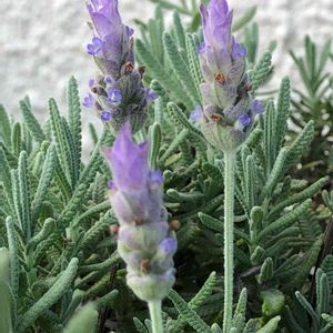 おはようございます☁ 刈り込んだラベンダー・デンタータから新しいお花が咲いてました。 本当は、欲しかったのは富良野に咲く長く伸びる種類のラベンダーでした。😅💦🌿🌿💜 でも、この葉を手で触って匂う香りも好きです。(*˘︶˘*).。.:*♡