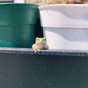 今日は午後からちょっぴり過ごしやすい気温でした✨ 多肉さんのパトロール中、またまた🐸さんがっ😳 これで、3度目のご対面です🐸 3度目となると、少し慣れてきて、📷を撮る余裕もあり😅 いつも、この子は、花うららさんのポリポットの中から出てくるんです😳 ただいま、ベランダにて過ごして頂いています😳 わんこに見せてあげたら、特に興味は示さず😅