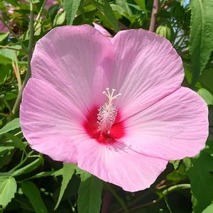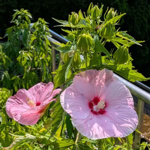 おはようございます🌞 アメリカフヨウ🩷 外出先で見つけました👀 暑さの中 淡いピンク色のお花が 太陽に向かって 大きく咲いているのが 印象的でした🤗 7月12日 撮影しました☺️📱✨️