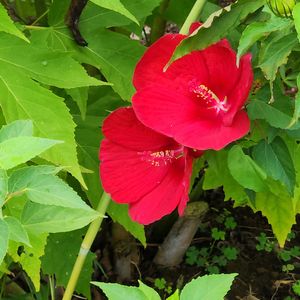 前回投稿した「アメリカフヨウ」と同じ株に2つ目の赤い花が咲きました🥰