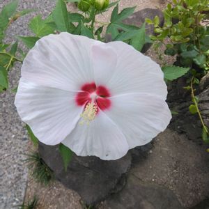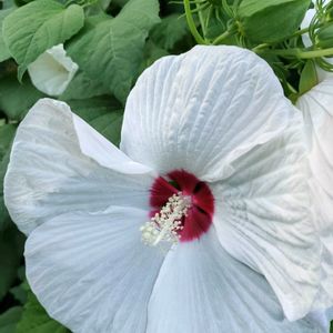 散歩道に咲いてます🐕🐾 🤍アメリカフヨウ🤍 アオイ科フヨウ属 大きな花が咲いてます 花は一重の丸型で、一日花で夕方には萎んでしまいます 🍃葉は小さめの卵形です