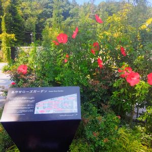 光綾公園 あやせローズガーデンにて🌹 入り口付近のウェルカムガーデンは赤い薔薇やアメリカフヨウ、エキナセアなどが生き生きして華やかでした🥰 この猛暑日でも綺麗に薔薇が咲いてて素晴らしかったです🌹 2025.8.23撮影