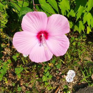 買い物帰りに ずっと気になっていたフヨウの花の写真を撮る事ができたょ❣️ 大好きな色だょ🩷 この花はおそらく放ったらかしだと… それでも毎年 ここで咲いているんだよね😚 凄いなぁ… 水も肥料も誰もあげないのに…🤔 お世話してあげたらもっとでっかい花が咲く?…🙄