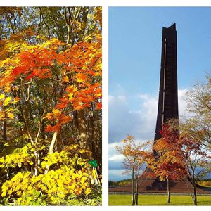 【今日のお花】② モミジ 北海道のシンボルタワー 50年が経過して撤去予定の高さ100m「北海道開基100年記念塔」とカエデもみじ? 📸 2021.10.22