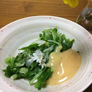 酢味噌和え🌱ネギ臭がしましたが、ネギの苦手な私でも食べられました。サクサクした球根が楽しい食感。ポン酢でも良さそう。