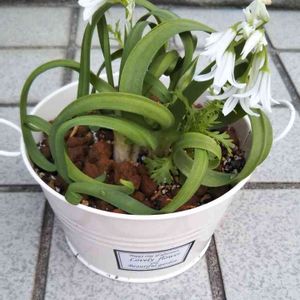 葉っぱも、クルリン。 お花は下向き。 このお花は、お隣さんから、わけてもらったのですが名前が分かりません。 志村けんさんが亡くなられたとき、お花のアップを投稿しました。 早速、たつみさんからみつかどねぎと教えていただきました。 ありがとうございました!!