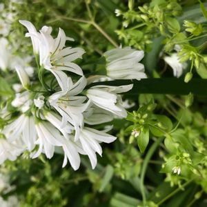 小さな花壇のハナニラ達の間から、白いベルのような鈴なりに咲いたお花✨ 下から覗くと緑のラインの素敵なユリのようなお花でした😊 あなたはだぁれ⁉️ ゆっちさんから回答をもらいました✨ 『ミツカドネギ』だそうです😊 ニラやらネギやら… 可愛らしいお花に想像も付かないお名前なんですね…🙄 こんなにお花とのギャップのある名前なのに、植えた覚えのない私😅