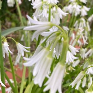 🏷白い水曜日♡ 🏷素敵な水曜日 🏷花咲く乙女たち♡ 🏷純白マニア アリウムトリケトラム🤍💟 ベル型の白い花🤍にグリーン🟢の筋 上品で優美✨綺麗です✨✨✨💠 和名が「ミツカドネギ(三角葱)」 食べれたんですね~😅 なんか、可愛くて食べれないかな⤵️