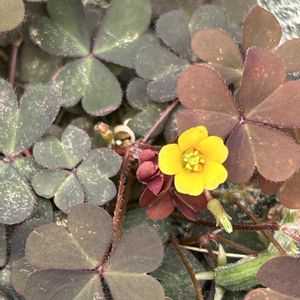 おはようございます♪ ♡今日のお花♡ 💛カタバミ💛 カタバミ科 多年草 赤酢漿(アカカタバミ) カタバミより全体が小型で花は濃黄色で葉は赤紫色になる品種です