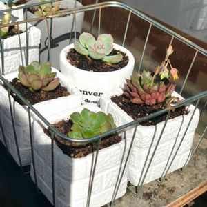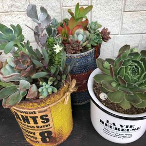 先日、100均で購入した多肉植物たちを寄せ植えしてみました。鉢もダイソーで一目惚れしたもの。可愛く仕上がりました。パソコンの両脇に置いて、癒されながら仕事しています。