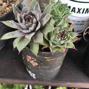 大きな地震が昨日ありました。 皆さま、お気をつけ下さい。 多肉さん下の方から子が覗いています(笑)シールはげかけ😅錆び缶の上から適当過ぎに貼られたからな😓