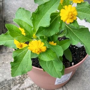 秋の空に咲く 🌱メランポディウム 風に揺れる💚葉っぱと💛花