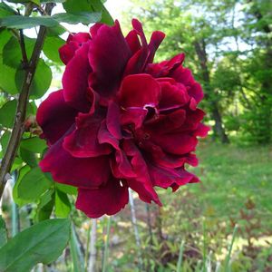 おはようございます GS今日のお花 バラ(赤) クリムゾングローリー(名札あり) ダマスクの香り 花壇の中で 一歩踏み込まないと近づけない。 風が吹くと甘く濃い香りが漂ってきました。 散歩道で 4月22日 メモ 黒赤紫、半剣弁高芯咲き、大輪の花。ダマスクにティの強香。 四季咲き性 作出国 ドイツ 1935年 @いばらきフラワーパーク より