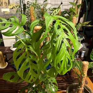 昨日お迎えしたモンステラエスケレート。 マドカズラをイメージしてたけど、葉が大きくてびっくり🫢 今度のお休みに、登り棒仕立てに変えようか悩み中。