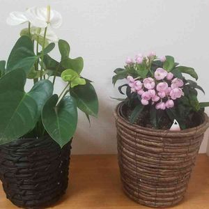 おはようございます 8月21日(土)にお迎えした 『においざくらべにふじ』さん 8月24日(火)の投稿で オメカシした姿を披露して 投稿したところ 鉢カバーを入れずに撮影して 投稿してしまいました(汗) アホですね~~ もう1度こんどは 先日息子からプレゼントして もらった 『アンスリウムのクリンハート』さん 鉢カバーを購入しての オメカシした姿での 仲良し記念撮影会です! やっと会えたお二人様~(笑)