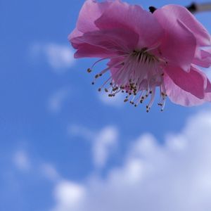 今日は、午後2時過ぎから30分ぐらい、近所の垂れ梅のおばちゃんの庭へ夫婦で行き、花見をさせてもらいました。お土産としてフルーツケーキを持っていき、おばちゃんがコーヒーを入れてくれたので、楽しくおしゃべりをしながら、垂れ梅を見ていました。 青空に可愛いピンクの梅が浮かんでいました。 目白が蜜を吸いにやって来ていました。むくどりか、ひよどりが、蜜を吸いに来た蜂を狙っているようで、待ち構えている様子も見えました。 10枚ぐらい垂れ梅の写真を撮りましたが、この一枚が、きれいだったので、これを投稿します。