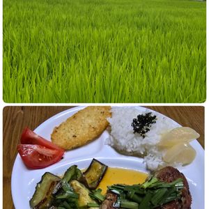 ( *˘ᵕ˘*)⚘ ⁾⁾こんばんゎ⚘⠜ 近くの田んぼ〜 🌱🌱🌱🌱🌱🌱🌱🌱🌱 夜は〜ハンバーグ〜