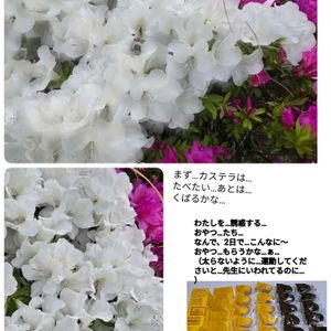 (*˘︶˘*)オヤスミナサイ.。.:*♡ お花は 東山植物園より〜。 おやつは〜 ただのっけたぁ〜 (,,ー́ 艸 ー̀,,)♡