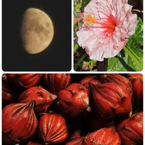 こんばん〜わ〜 月が🌙 みえましたあ〜。 真っ赤な ローゼル🤭 いただきました〜。