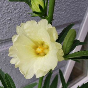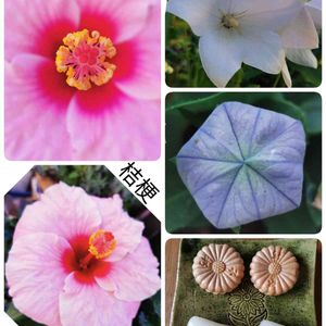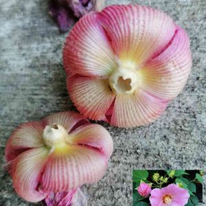 ฅʕ,,•ꈊ•,,ʔ おはよう✨ ございます〜〜。 白ローゼルの 可愛いお花 咲いてま〜す。 よ〜おくみると…白い点々???虫? 病気?かなあ…… ちいさな…テンテン 赤のローゼルは ハーブティーに 白いローゼルは 何に?使いますか? おしえて〜ください〜〜〜〜。