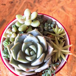 こんにちは✩ೄ 今日も天気が不安定。 あられがザーザー降ってました。 バケツをひっくり返したような雨が降ったあと少し晴れたのにまた真っ暗になっちゃいました。 初めて寄せ植えをしてみました!! 第1号です!! センスない〜とかは、いいんですよ。 愛があれば、なんでも。笑 姉が多肉ちゃんに興味が出たらしく…笑 おすそ分け寄せ植えです✩⃛˖° お嫁に行っても、元気にすくすく成長してね✩ೄ