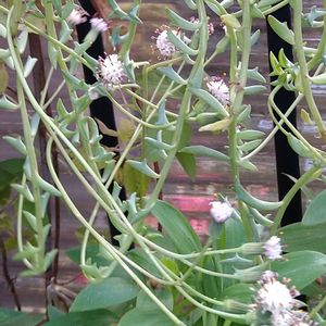 🍀ドルフィンネックレス🍀 分かりにくい写真でごめんなさい。🙏😅💦 小さい鉢から30cm位伸びました。 お花も沢山咲いています。 🐬イルカの形もかわいい🎶🎵💕 七宝樹とグリーンネックレスを交配した品種でたまに平ら葉っぱがでるらしいです。 🏷毎月8日はネックレスの日に参加させて下さいね。